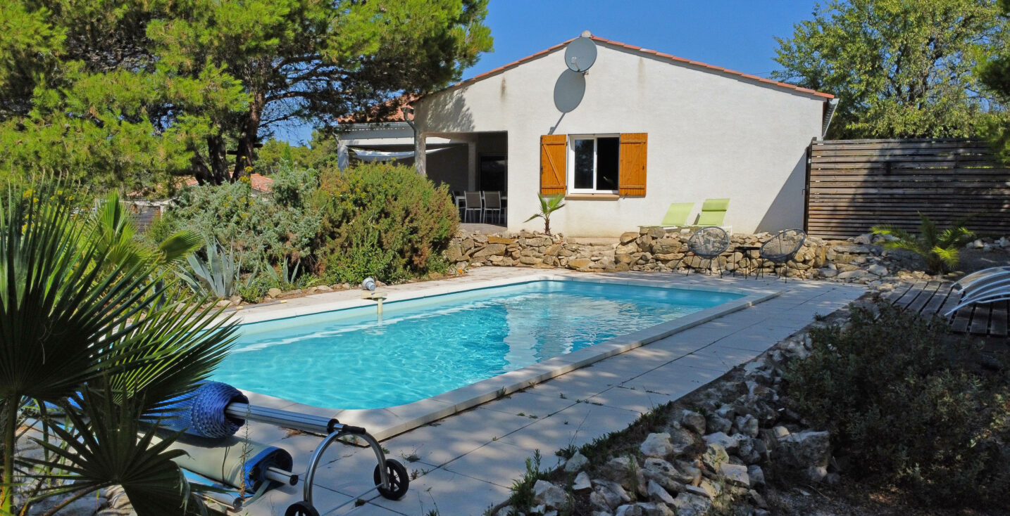Welcome to Villa La Maison Blanche, a contemporary and tastefully furnished villa nestled on the wild heights of Montcélèbre (34210), in the heart of the Montagne Noire. Here, you’ll enjoy a peaceful setting, spectacular views over the hills and forest, a heated private pool, and a lovely outdoor living space to savor the art of living in the South of France