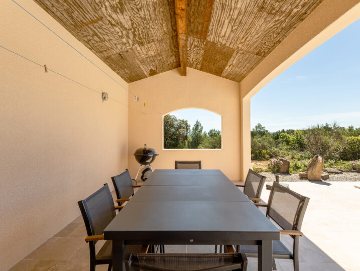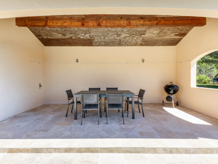 - Overdekt terras met eettafel, verbonden met de woonkamer